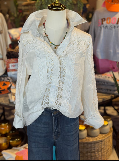 The Madeline Top is an elegant and timeless addition to any wardrobe. Made from 100% cotton, this beautiful white top features eyelets throughout f...
