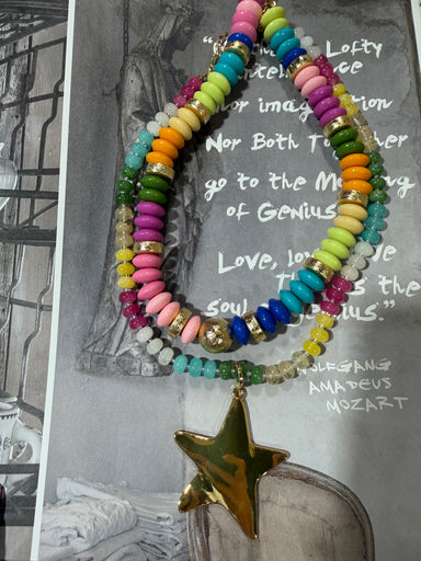 Bring joy and color to your everyday style with the Penny Beaded Star Necklace, a playful mix of vibrant beads centered around a charming star acce...
