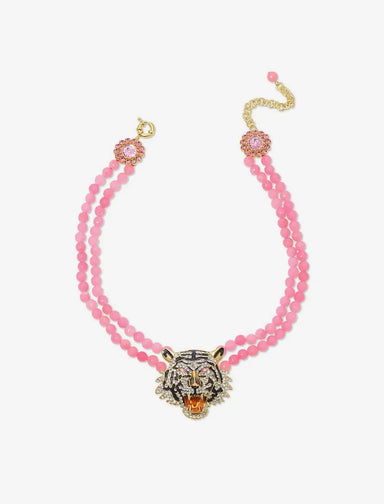 Show your fierce side with this tiger beaded necklace. The powerful black onyx or rose quartz gives way to a ferocious tiger pendant that gives thi...