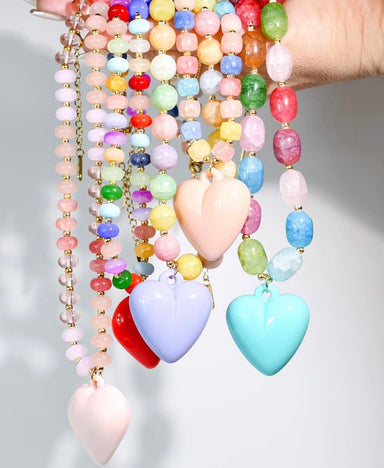 Romantic, vibrant, and full of personality, the Sweetheart Necklace features a polished strand of 18k gold plated beads adorned with a collection o...