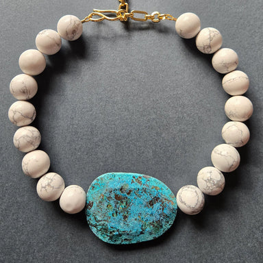Chrysocolla focal bead,2x2.5 Howlite 16-19 inches