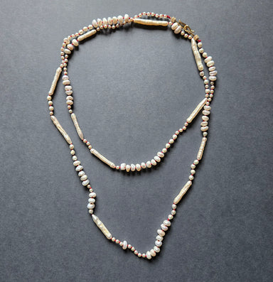 7 strands of fresh water pearls Deerskin lace Brass tassel Vermeil link Shell tassel Adjustable size