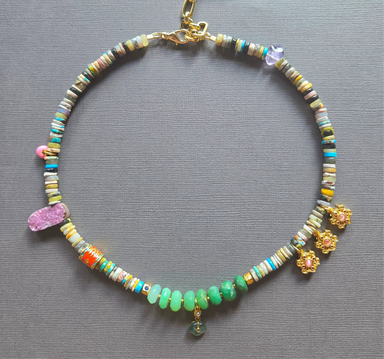 Ocean jasper Chrysoprase Enamel charms Jade cloud Amethyst 16-19 inches