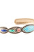 This striking cuff bracelet features genuine blue and green turquoise, genuine orange coral, and genuine blue lapis stones set in a golden bronze band. The largest stone measures 0.35" in length and 0.80" at its widest, with a total weight of 19.1g. Each piece is meticulously handcrafted and finished, making it a unique and captivating accessory.