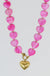 • This charming heart necklace features soft pink heart beads paired with a textured gold heart charm for the perfect blend of playful and chic.