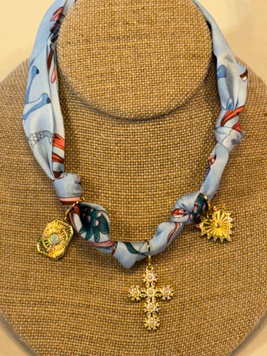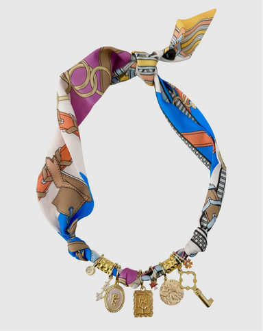 The Lisa Multi Charm Scarf Necklace is a beautifully handcrafted statement piece. This best-selling design features a luxurious scarf adorned with ...