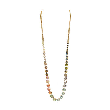 Add a touch of vintage charm with the Celia Necklace in Green Mix. Featuring a 30" antique gold-plated brass base and sparkling high-quality crysta...