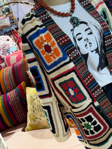 Expertly crafted and made to last, our Granny Square Cardigan is the perfect addition to your wardrobe. The open front design and unique granny squ...