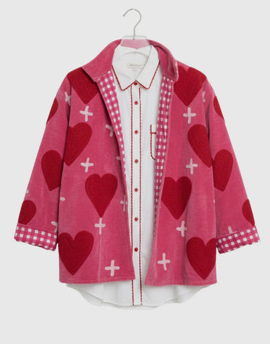 Introducing the Rita Heart Cardigan - the perfect addition to your wardrobe! This cozy knit cardigan features a vibrant red color and playful pink ...