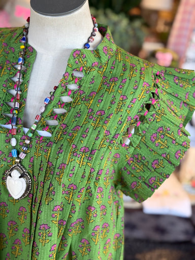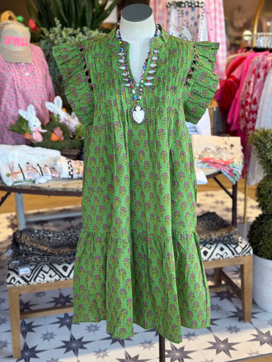 This dress as all the details that you will fall in love with. The Collins dress is a beautiful green floral stamped fabric. It features a subtle d...