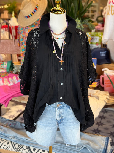 This cute star embroidery button up can be closed or worn open. Button up collared detailed. 100% cotton