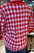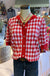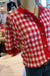 Short sleeve red and white plaid cardigan that is short sleeve. Button detailing.