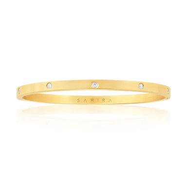 24K gold plate Inner circumference: 7.8 inches (small), 8 inches (medium), 8.5 inches (large) Width: 0.2 inches Julie Vos hallmark