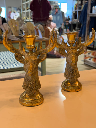 Bring a touch of woodland whimsy to your decor with our Deer Duo Candle Holders. This charming set of two candle holders, featuring intricately det...