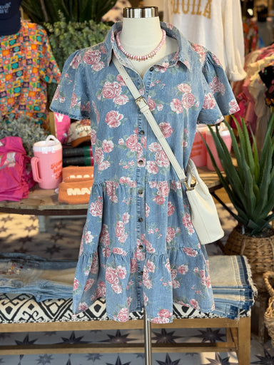 Adorable lightweight denim colored tiered dress. Button up. Cotton s 38in x 33in m 42in 33in l 44in x 34in xl 46in x 34in