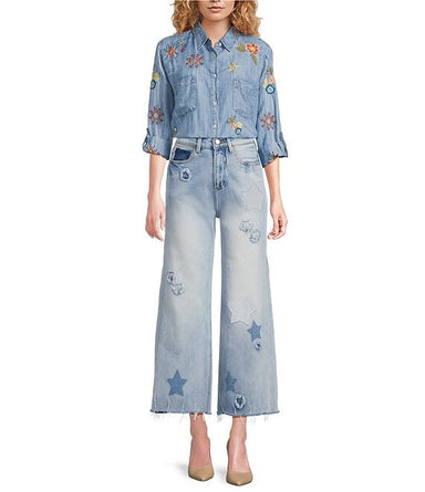 Introducing the Kalyn Rae Embroidery Jeans - expertly crafted with embroidered detailing on the side and fraying detail denim for a unique touch. T...