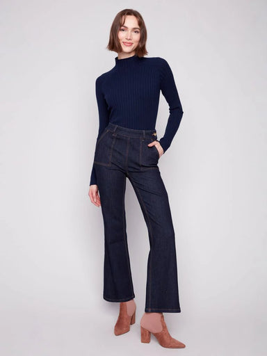 Medium Blue Flare Leg Jeans - Celine CollectionThe Celine flare jeans are designed with a slim fit through the thigh that gradually widens below th...
