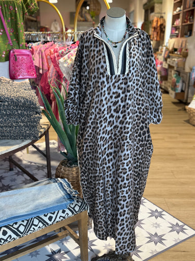 Expertly crafted, the Tracey Leopard Maxi Dress boasts a fierce leopard print and a touch of cream lace, combined with black and grey stripes for a...
