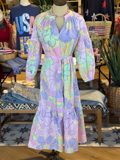 The Calliope Dress boasts pastel large flowers and a flattering V-neck design that can easily be dressed up for any occasion. Made from 100% cotton...