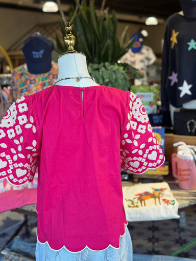 The Pia Embroidered Top in a rich wine color features delicate embroidery along the V-neckline and frayed edges for a bohemian touch. Made from 100...
