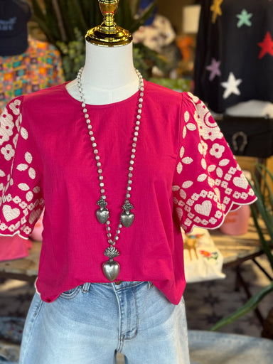 This Dita Embroidery Top is made of a luxurious rayon blend and features stunning embroidery and tassels, adding unique and elegant details. The ve...