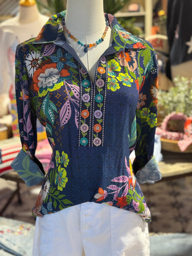 Introducing the Emma Embroidery Top, with elegant navy coloring and stunning cream flower embroidery. Made with a comfortable cotton blend, this to...