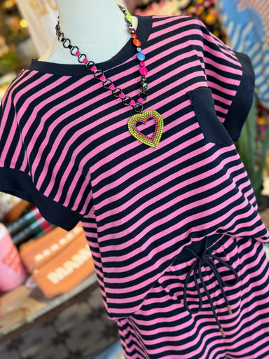 Navy and pink stripe set. Elastic pull on shorts. cotton rayon blend . Sold as set