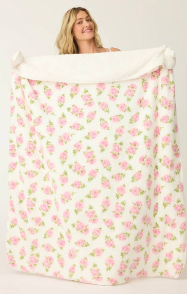 Stop and smell the cozy roses. Scattered blooms in soft pink add a vintage-inspired finish to this ultra-soft fleece blanket, crafted for serious s...