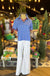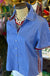 The Aubrie Stripe Top features a blue cotton blend fabric, complemented by pinstripe white stripes and contrasting red, blue, and white stripes along the sides and inside of the sleeves and collar. This design enhances both comfort and breathability while providing a modern aesthetic suitable for various occasions.