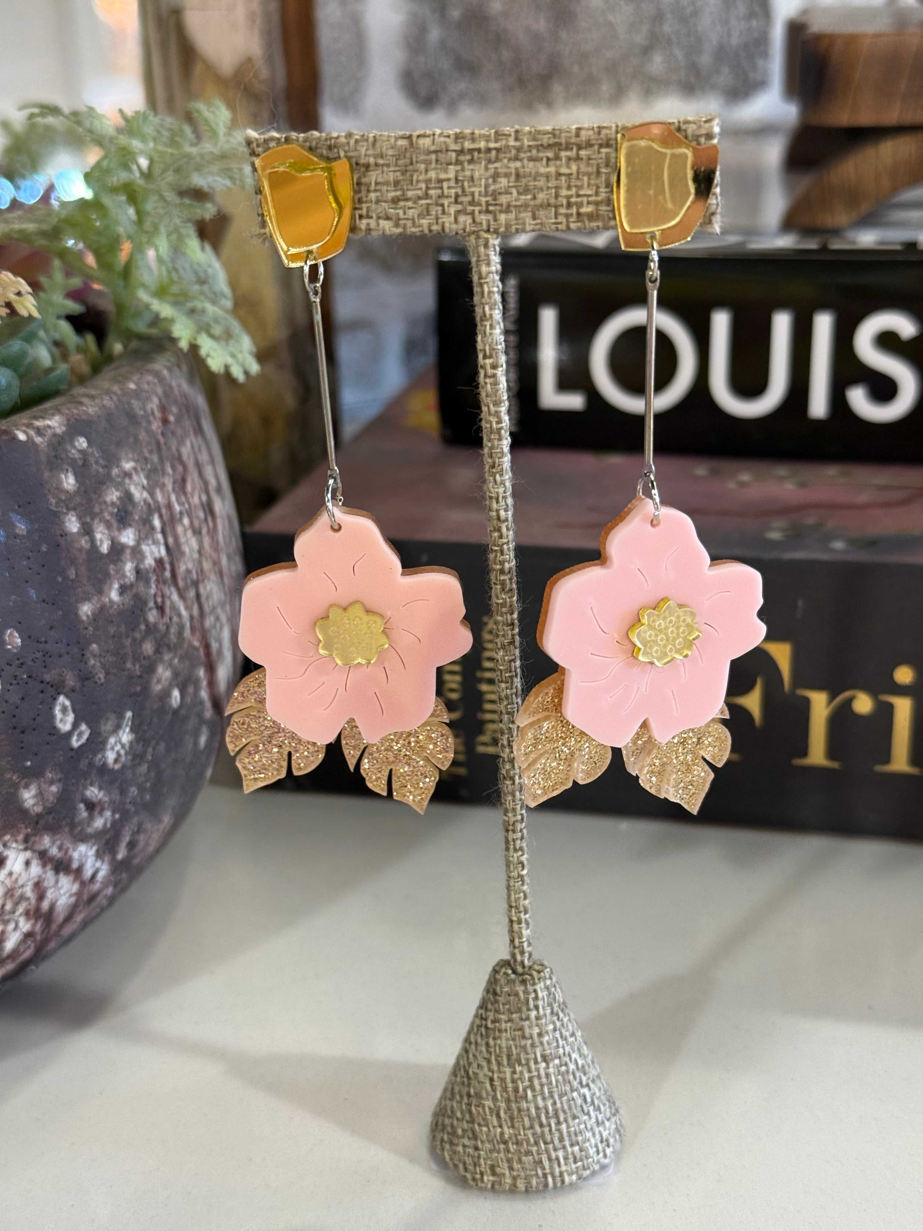 Looking to elevate your style, enjoy these stunning acrylic pink flower earrings!!!