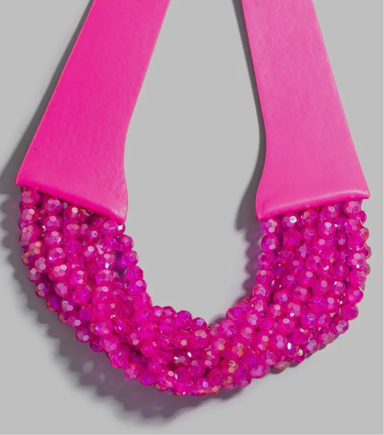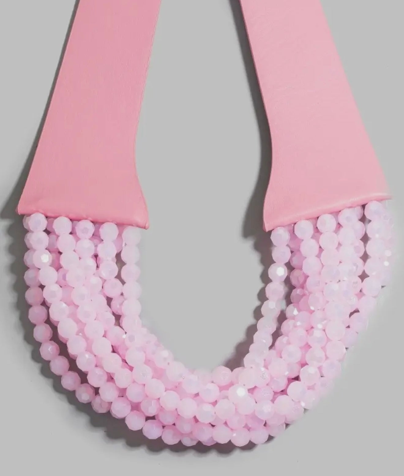 This necklace brings a luxurious faux leather and faceted beads statement style. Embark on a journey of sartorial refinement as this necklace effortlessly complements your fashion sense.