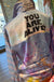 Awaken to "YOU ARE ALIVE!" with the Isabel printed shirt, a vibrant celebration of consciousness and energy. This eclectic piece features sacred geometry including the Flower of Life in gold and orange, mystical eye symbols, and bold empowering text across the back.