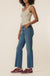- High-rise ankle flare jeans in a medium wash with Fab Ab pockets and inset leg detail. Stretchy fabric ensures comfort, with a raw hem for a modern, flattering look.