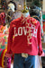 Heather cranberry red sweatshirt with white Lover lettering true to size fit fleece.