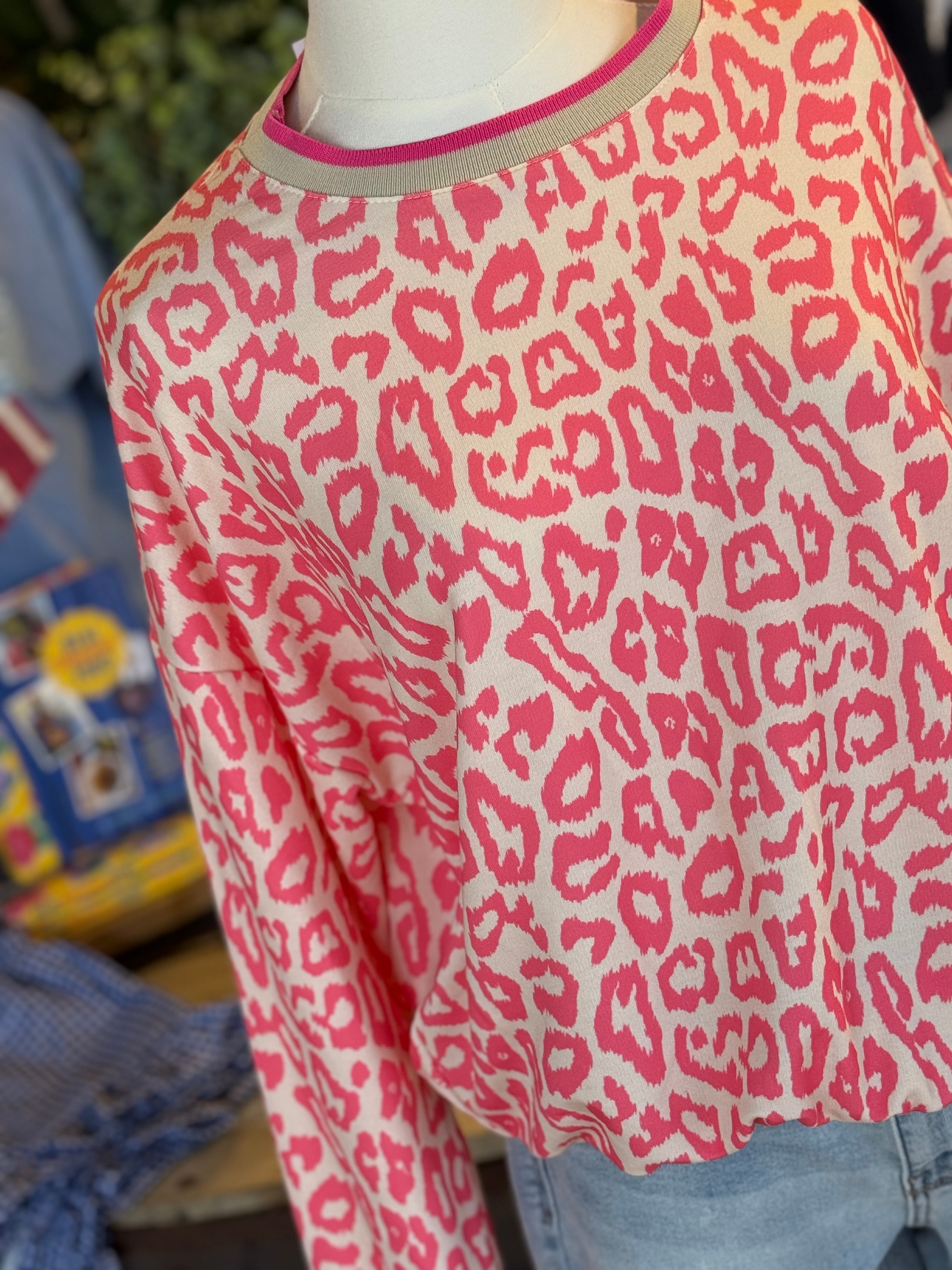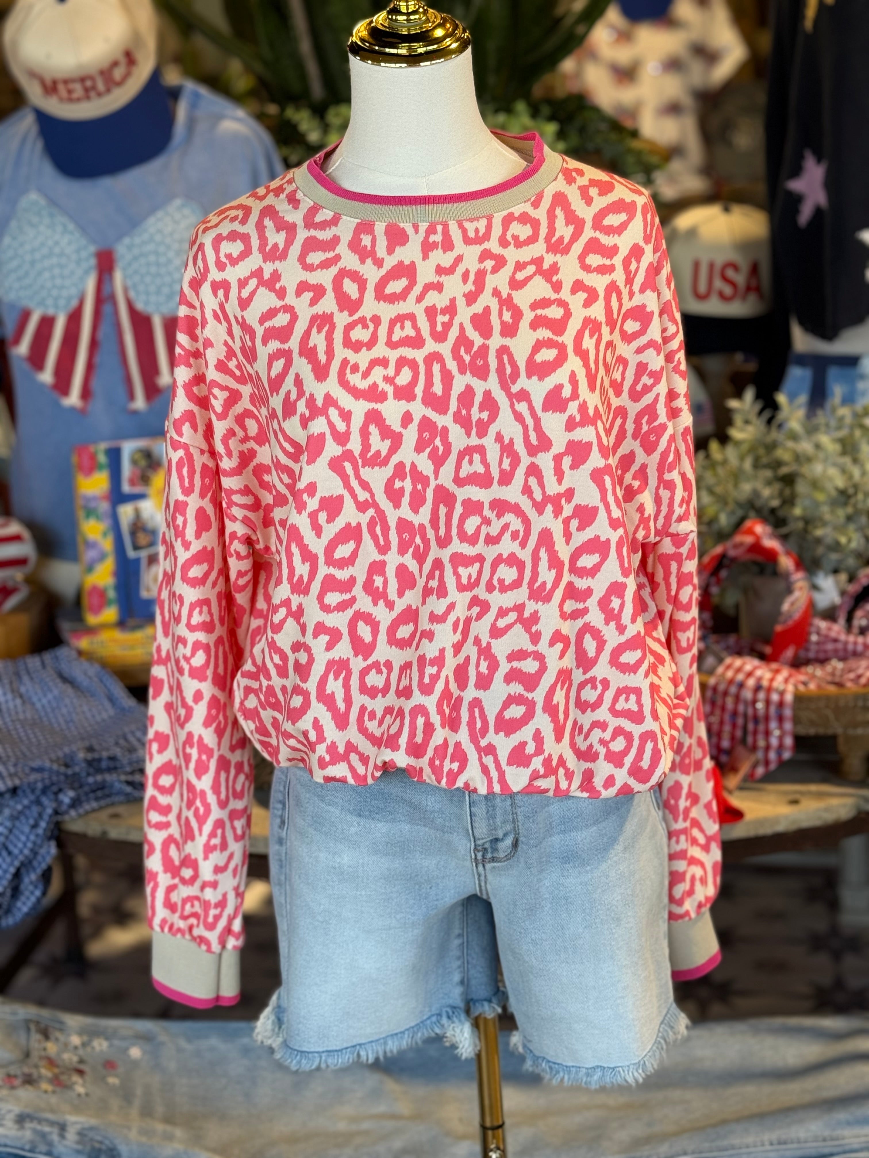 Be wild and cozy in our Pink Cheetah Top! Made with super soft fabric, this sweatshirt features a hot pink cheetah print and contrasting banding. It's the perfect combination of comfort and style for all your adventures. (Roar with style in this playful and comfy sweatshirt!) one size fits most