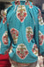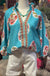 The Misty Top features a stylish aqua mint color, complemented by a textured V-neck and ruffles around the neckline, enhancing its visual appeal. The three-quarter sleeves provide a balanced silhouette, while the 100% polyester fabric ensures lightweight comfort and ease of movement, making it suitable for various occasions.