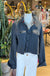 Grey textured one of a kind button up with red and navy stripe . One size up to size 12