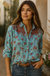 Our Turq Garden button-down shirt is a representation of commitment to quality and style. It embodies our brand's vision of blending European fashion with a vintage, hand-crafted aesthetic. Inspired by the ever-changing world of color and texture, this women's top is both stylish and a trendsetter. Cotton button up