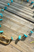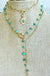Turquoise ( color/magnesite ) bead and gold plated chain with caribiner lock center. Lariat :y option or regular necklace. Necklace adjustable 15”-17” chain drop 4.25”on lariat.