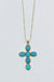 - Crafted with polished turquoise stones set in a radiant cross design. This necklace blends spiritual elegance with bold. Earthy beauty.