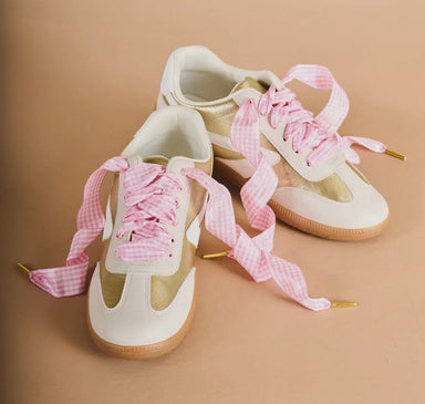 Add a pop of color to your shoes with our Step it Up Gingham Pink Shoelaces! Soft, luxurious, and perfectly flexible, these laces tie into bows tha...