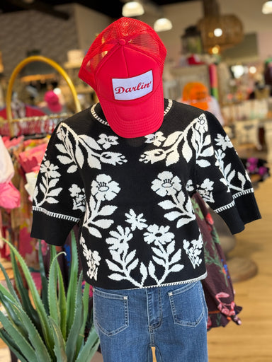 Introducing the stylish and versatile Gina Rae Top. Crafted with a beautiful black and white floral design, this knit top is perfect for any occasi...