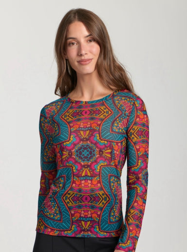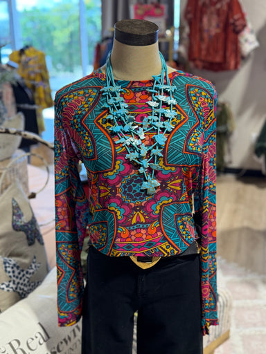 Gorgeous mesh top in jewel tones 80% nylon 20% spandex Circumference: S- 36 inches M- 38 inches L- 40 inches XL- 42 inches