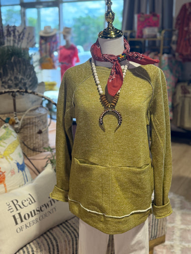 The Mazie Top is a must-have for any fashion-forward individual. Crafted with a stunning citrine knit fabric, this top boasts raglan sleeves and co...