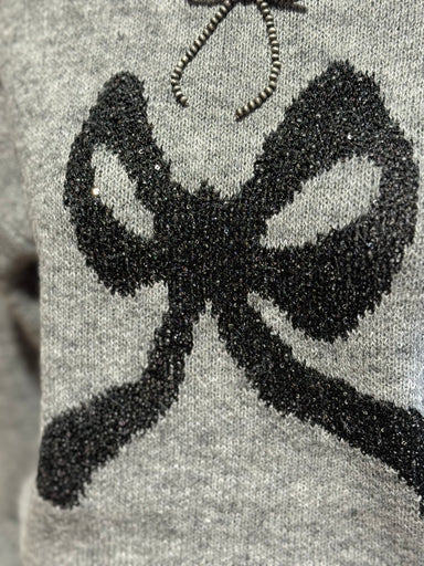 This grey sweater features delicate bow detailing that adds a touch of charm to any outfit. Made from high-quality materials, it offers a cozy and ...