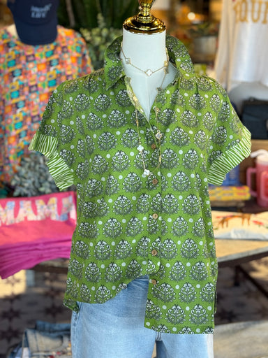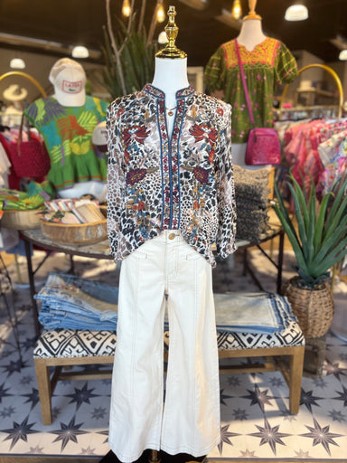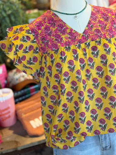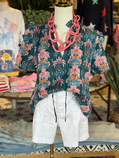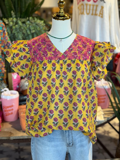 Introducing the Flower Patch Top - a charming patchwork design with delicate flower appliqué ruffle detail. This roomy top offers a comfortable and...