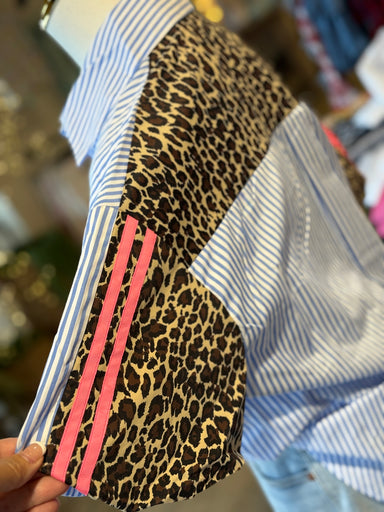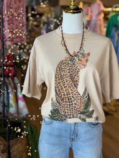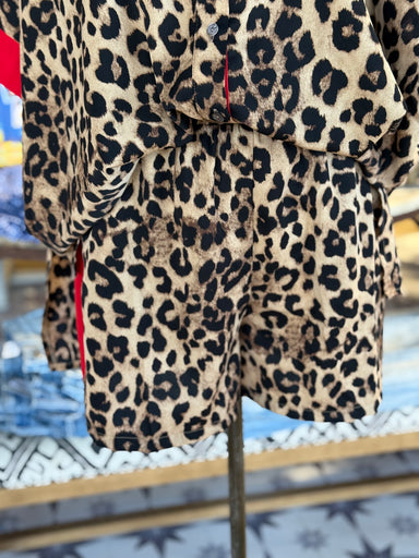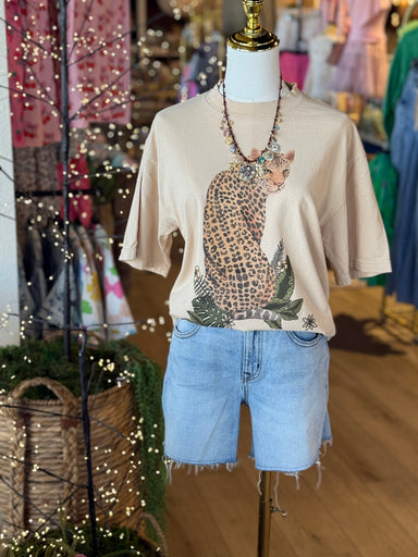Oversized leopard denim jacket that is light weight. Fringe detailing. Tie front. Size down circumferenceS- 46 inM- 48 inL- 50 inXL- 52 in