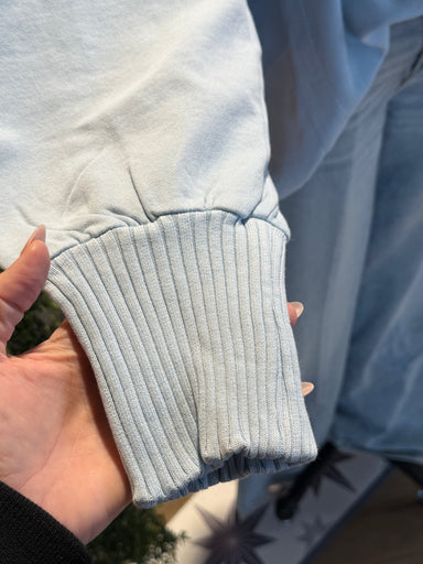 The French Terry Baby Blue pullover is made from fleece French cherry fabric, providing a soft and comfortable feel. Its baby blue garment dye and ...
