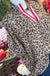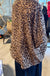 Gloria Leopard Print Top features a trendy leopard print contrast band and flowy dolman sleeves for a chic and flattering look. With a versatile V-neck, this blouse is perfect for any occasion. Elevate your wardrobe with this stylish and comfortable top.