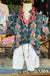 Experience paradise in the Palm Royale Top. With a stunning tropical print in pink and teal, this top exudes effortless elegance with its puff sleeves and relaxed silhouette. The top is perfect for a vacation-ready style. Made from high-quality materials with metallic thread detailing and a button-down design, this dress is a must-have for any fashion-forward woman. Available in sizes XS to XXL, you'll find the perfect fit for you.
